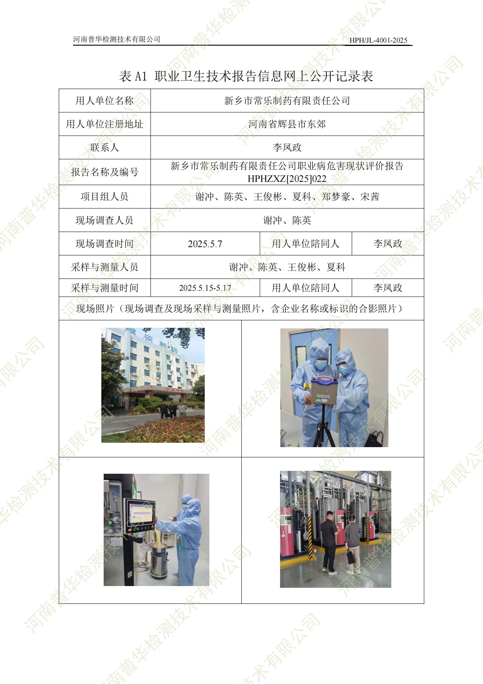 新鄉(xiāng)市常樂制藥有限責(zé)任公司職業(yè)病危害現(xiàn)狀評價 點擊次數(shù):121 次